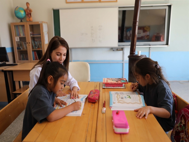 GAZİANTEP’in Nizip ilçesi Kesiktaş Mahallesi'nde tek derslikli okulda kardeş 2 öğrenci ile eğitim sürüyor. Her gün 45 kilometre katedip mahalleye gelen, öğrencilerine hem öğretmenlik hem de arkadaşlık eden okulun tek öğretmeni Demet Kasırga, “Hem köyün kalkınması hem ülkenin kalkınması hem de köyde bir ışığın sönmemesi anlamına gelir okulun açık olması. Bu hususta görev yaptığım için, rol aldığım için çok mutluyum” dedi.Nizip’in 211 nüfuslu kırsal Kesiktaş Mahallesi’ndeki okulda geçen yıl eğitim gören 4 öğrenciden 3’ü ya mezun oldu, ya da aileleriyle taşındı. 2’nci sınıf öğrencisi olan Nigar Ece Yılmaz’a bu yıl okula yeni başlayan kardeşi Hatice Yılmaz eşlik etmeye başladı. Birleştirilmiş sınıfta ders gören 2 kardeşe öğretmen Demet Kasırga ders veriyor. Kasırga, kardeşlere hem öğretmenlik hem arkadaşlık yapıyor. Dersleri eğlenceli hale getiren Demet öğretmen, teneffüslerde ise öğrencileriyle oyunlar oynuyor. Her gün yaklaşık 45 kilometre katedip okula gelen Demet Kasırga, ilk iş olarak okulu temizlediğini, ardından da sınıfındaki hazırlıkları tamamlayıp öğrencilerini beklediğini söyledi.13 yıllık sınıf öğretmeni Demet Kasırga, 3 yıldır görev yaptığı Kesiktaş İlkokulu’nda her zaman öğrenci sayısının az olduğunu söyleyerek, "Köye ilk geldiğimde 2 yıl önce de öğrenci sayımız azdı ama bu sene öğrenci sayımız 2’ye düştü. Bunun sebebi ise köyden kente göç yaşanıyor. Okulun açık olması çok önemli. Hem köyün kalkınması hem ülkenin kalkınması hem de köyde bir ışığın sönmemesi anlamına gelir okulun açık olması. Bu hususta görev yaptığım için, rol aldığım için çok mutluyum. Okulumuzda benden başka görevli kimse yok. Hizmetlimiz yok, başka çalışan öğretmen arkadaş yok öğrenci sayımızdan dolayı. Okulun her şeyi benim. Çocuklar için de benim için de farklı bir deneyim. Birleştirilmiş sınıfta eğitim devam ediyor. Hem birinci sınıf hem ikinci sınıf öğrencim var. İkisi de kardeş zaten. Bire bir çalışmak durumunda kalıyorum. Öğrenci sayımız az olduğu için öğrencilerime uzun zamanlar ayırıyorum. Bu çocuklar için de bire bir öğrenme fırsatı sunuyor. Gelişimlerini gözlemlemek için de çok zamanım oluyor. Serbest zamanları, teneffüsleri de birlikte geçiriyoruz. Çocukların evleri okula çok yakın, öğle aralarında eve gidip, tekrar okula geliyorlar ve çıkış saatine kadar birlikte zaman geçiriyoruz öğrencilerimle" diye konuştu.‘OKULUMUZU ÇOK SEVİYORUZ’Aynı zamanda sınıf arkadaşı olan Nigar Ece ve Hatice Yılmaz kardeşler ise okullarını ve öğretmenlerini çok sevdiklerini söyledi. Kardeşler, her gün yeni yeni şeyler öğrendiklerini ve çok eğlendiklerini ifade etti.Kadir GÜNEŞ-Ahmet ATMACA/GAZİANTEP, (DHA)