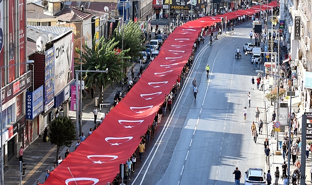 İzmir'in kurtuluşunun 103'üncü yıl dönümü etkinlikleri, 'Zafer Yürüyüşü' ile başladı. 7'den 70'e İzmirlilerin katıldığı yürüyüşte 350 metrelik dev Türk bayrağı açıldı.İzmir'in düşman işgalinden kurtulduğu 9 Eylül 1922'nin 103'üncü yıl dönümü, Valilik koordinesinde kutlanmaya başlandı. Kutlamalar, 'Zafer Yürüyüşü' ile başladı. İzmirliler, yürüyüş için Basmane Polis Merkezi önünde saat 09.00 sıralarında toplandı. Yürüyüşe AK Parti Genel Sekreteri ve İzmir Milletvekili Eyyüp Kadir İnan, MHP Genel Sekreter Yardımcısı ve İzmir Milletvekili Tamer Osmanağaoğlu, AK Parti İzmir Milletvekili Şebnem Bursalı, İzmir Büyükşehir Belediye Başkanı Cemil Tugay, ilçe belediye başkanları, AK Parti İl Başkanı Bilal Saygılı, MHP İl Başkanı Veysel Şahin ile STK'lar ve çok sayıda vatandaş katıldı.Anafartalar Caddesi ile Cumhuriyet Meydanı arasında geçen yürüyüşte 350 metrelik dev Türk bayrağı taşınırken, 7'den 70'e İzmirliler, yol kenarlarından da Türk bayrakları sallayıp, kentin kurtuluşunu kutladı.Öte yandan dün Balçova'da polis merkezine gerçekleştirilen saldırıda 2 polis memurunun şehit olması sebebiyle kortejde bando yer almadı. Kortejin Cumhuriyet Meydanı'na ulaşmasıyla yürüyüş sona erdi ve Atatürk Anıtı'na çelenk konulması törenine geçildi. (DHA)