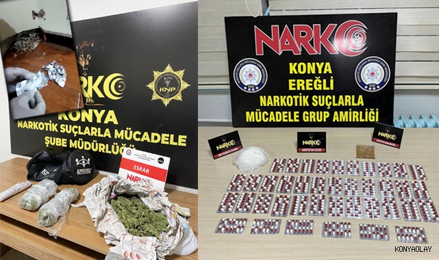 Konya İl Emniyet Müdürlüğü Narkotik Suçlarla Mücadele Şube Müdürlüğü ve Ereğli İlçe Emniyet Müdürlüğü Narkotik Suçlarla Mücadele Büro Amirliği Ekiplerince yapılan çalışmalar sonrasında uyuşturucu ticareti yaptığı tespit edilen 4 evde ve 1 araçta arama yapıldı.