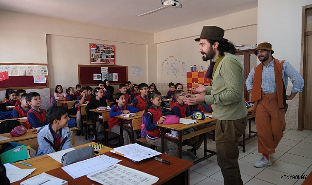 Konya Büyükşehir Belediyesi Medeniyet Okulu Projesi kapsamında 31 ilçedeki öğrencilere yönelik gerçekleştirilen “Çat Kapı Sınıf Tiyatrosu” çocuklara çeşitli konularda farkındalık kazandırıyor. Proje kapsamında bu yıl 31 ilçede 1.250 okuldaki yaklaşık 75 bin 4. ve 5. sınıf öğrencisine 6 bin 400 tiyatro gösterimi ve 80 bin adet dergi dağıtımı gerçekleştirilecek.