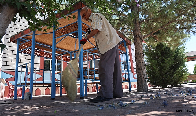 Babasından kalan temizlik mirasına 26 yıldır sahip çıkan 86 yaşındaki Mehmet Mert, "Benim günüm buranın temizliğiyle geçer. Yani isteksiz değilim, içimden geliyor benim. Onun için ben hiç acınmıyorum çok da hoşuma gidiyor. Buraya adadım kendimi. Babam rahmetli buralarda kavak vardı ve o kavakları sulardı, otlarını alırdı. Ondan da bana miras kaldı. İlk başlangıcım; caminin önündeki bölme sonradan yapıldı, oraya kereste falan getirdiler, o dilimleri taşımayla başladık. Bacaktan sakatım zaten, aldım elime süpürgeyi dün bugün gibi ben de yılın nasıl geçtiğini bilemedim. Baba mirasında 26. seneyi devralıyorum çok şükür. Çok rüzgar olsa dahi bu çamların dikenleri döküldüğü müddetçe o rüzgarda temizlerim. Ben de hiç üşengeçlik yok severek yaparım" dedi.