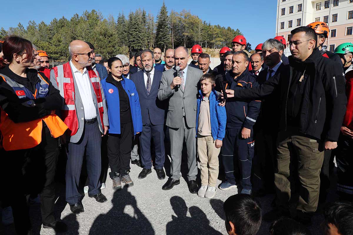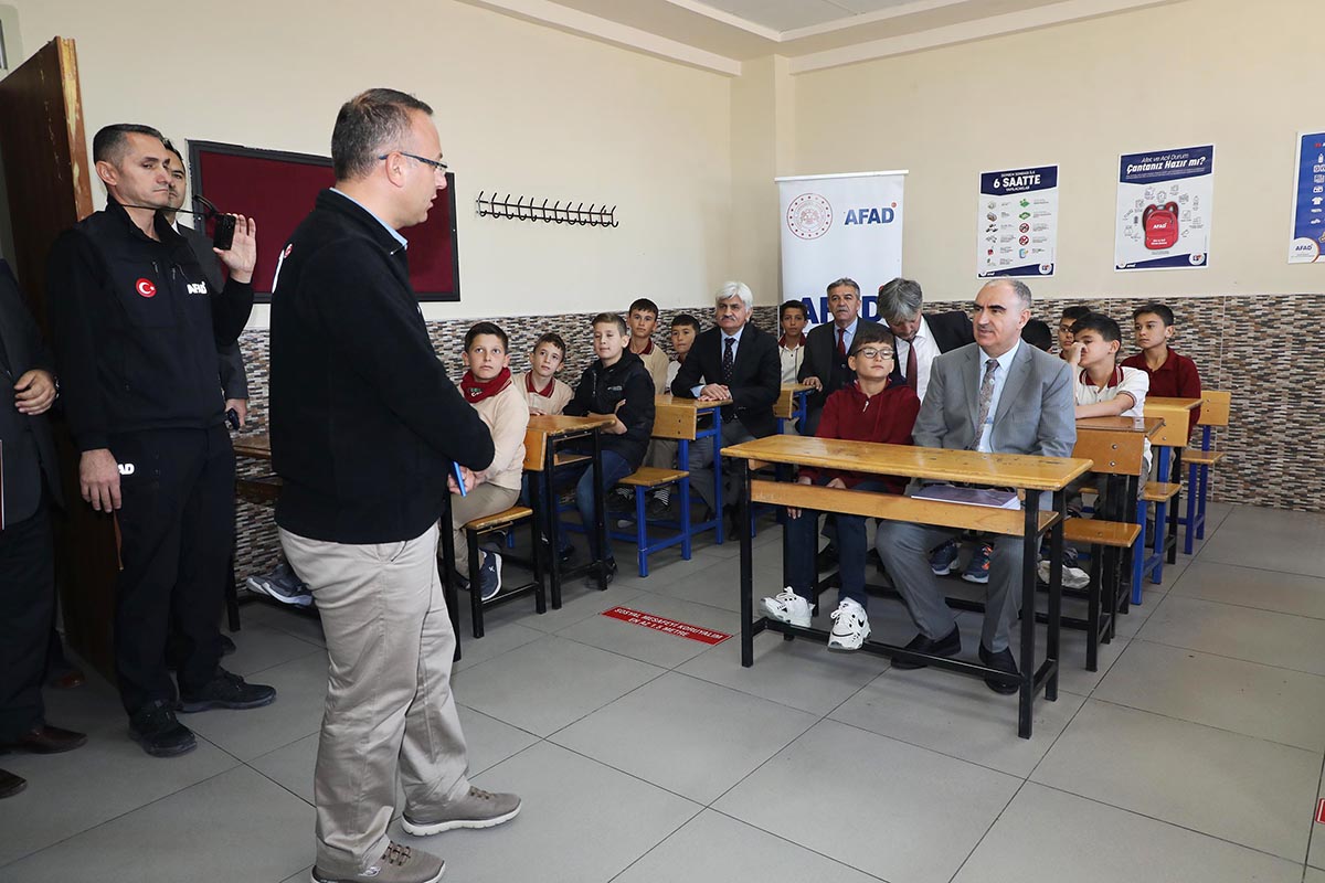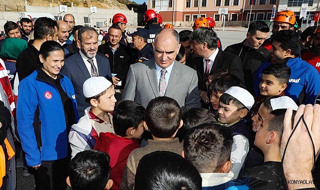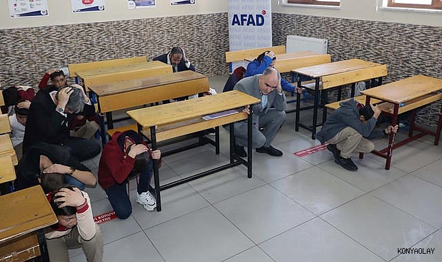 Türkiye genelinde 81 ilde eş zamanlı olarak gerçekleştirilen Deprem Anı ve Tahliye Tatbikatı’na Konya'da Vali Vahdettin Özkan'ın da katılımıyla Meram Çayırbağı İmam Hatip Ortaokulu ve Yatılı Kur’an Kursu’nda yapıldı.Afet ve Tatbikat Yılı etkinlikleri kapsamında gerçekleştirilen tatbikat, müftülüklerde, Kur’an kurslarında, eğitim ve ihtisas merkezlerinde saat 10:00'da eşzamanlı olarak gerçekleştirildi. Deprem anı alarmlarının çalması ile başlayan tatbikatta, deprem sırasında hayati öneme sahip olan çök-kapan-tutun pozisyonu alan öğrenciler, tehlike geçti alarmının ardından güvenli tahliye protokollerine uygun olarak okuldan tahliye edildi. Tahliyenin ardından acil toplanma alanlarında bir araya gelen öğrencilerin oluşturdukları çemberlerde yoklamalar alındı. Tatbikatın sona ermesinin ardından öğretmen ve öğrencilerle sohbet eden Vali Özkan, tatbikatı başarıyla tamamlayan öğrencileri kutladı.Tatbikat sonrasında açıklamalarda bulunan Vali Özkan, Konya'da, tüm okullarda depremle, afetlerle ilgili gerçekleştirilen tatbikatlarla oluşturulan hassasiyetin çok kıymetli olduğunu ifade etti.Bütün sivil toplum kuruluşlarının, destek kuruluşlarının, tek tek anneler ve babaların, öğrencilerin ve öğretmenlerin afet öncesi, esnası ve sonrasında neler yapması gerektiğini gayet iyi bildiklerini ifade eden Vali Özkan, “Cumhurbaşkanımız Sayın Recep Tayyip Erdoğan’ın rehberliğinde, ilgili Bakanlığımızın koordinasyonunda oluşturulan Afet Müdahale Planı ile afetlerde risk analizinin yapılması, afet sonrası yapılması gereken iş ve işlemlerle ilgili mevcut durum analizi, iş bölümü, iş merdivenlerinin oluşturulması, izleme ve değerlendirme konularında hassasiyetin oluşturulması ve bu risklerin bertaraf edilmesi için yoğun bir çaba mevcuttur. Kamu kurum, kuruluşları ve gönüllülerle beraber Türkiye genelinde afetlere müdahale ile ilgili tüm dünyaya örneklik teşkil edecek bir kabiliyete kavuşmuş durumdayız. Oluşturulması gereken farkındalık, eğitim faaliyetleri ile sağlanmakta olup bugün burada işin odağında olan öğretmenlerimiz ve öğrencilerimiz ile Kur'an kursumuzda bu faaliyeti hep beraber icra etmiş olduk. Öncelikle AFAD kurumuna ve İçişleri Bakanımıza böyle bir faaliyeti Diyanet İşleri Başkanlığımızla koordineli bir şekilde Türkiye'nin muhtelif yerlerinde icra ederek farkındalık oluşturdukları için teşekkür ederiz. Bizler de eylem planları çerçevesinde afetle ilgili hassasiyetin oluşturulmasına hep beraber katkı sunacağız” dedi. Deprem Anı ve Tahliye Tatbikatı' na Vali Vahdettin Özkan’ın yanı sıra; AFAD İl Müdürü Yıldız Tosun, İl Müftüsü Prof. Dr. Ali Öge, Konya AFAD Arama Kurtarma personeli, AFAD Gönüllüleri, İtfaiye Arama Kurtarma, Kızılay, UMKE, İHH, Beşir, Alperenler, Cansuyu ve Hayrat ekipleri ile öğretmenler ve öğrenciler katıldı.
