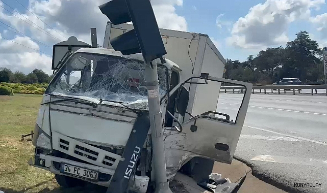 Arnavutköy 'de şoförünün direksiyon hakimiyetini kaybettiği kamyonet önce reklam panolarına ardından trafik ışıklarına çarptı.