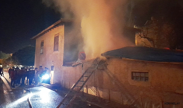 Karapınar'da bir evin yanındaki aşhanede çıkan yangının, evin çatısına sıçraması sonucu iki kişi yangından güçlükle kurtarıldı