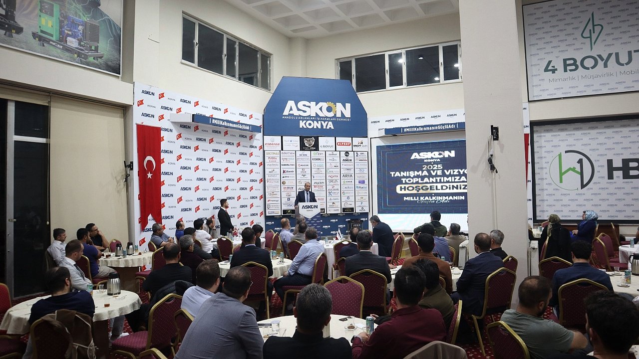 ASKON (Anadolu Aslanları İşadamları Derneği) Konya Şubesi, yeni başkan Yusuf Çimen ve yönetim kurulu üyelerinin ev sahipliğinde gerçekleştirilen tanışma yemeğiyle yeni döneme resmen adım attı. Dernek üyelerinin yoğun ilgi gösterdiği organizasyonda yeni döneme ilişkin hedefler paylaşıldı, yönetim kurulu üyeleri tanıtıldı.ASKON Konya Şube Başkanı Yusuf Çimen, yaptığı konuşmada birlik ve dayanışma vurgusu yaparak, “Bu dönemi hem dernek içi iletişimi güçlendirdiğimiz hem de Konya iş dünyasına daha fazla katkı sağladığımız bir süreç haline getireceğiz. ASKON olarak, üretimden ihracata, girişimcilikten teknolojiye kadar pek çok alanda aktif rol oynamaya devam edeceğiz” dedi.