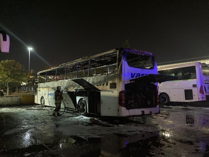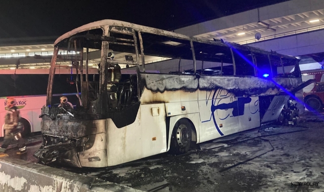 AŞTİ'de gece saatlerinde çıkan otobüs yangınında araç kullanılamaz hale geldi.