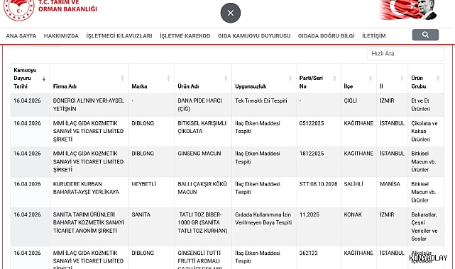 Bakanlık, vatandaşların güvenilir gıdaya ulaşması için listelerin guvenilirgida.tarimorman.gov.tr adresinden takip edilebileceğini hatırlattı.