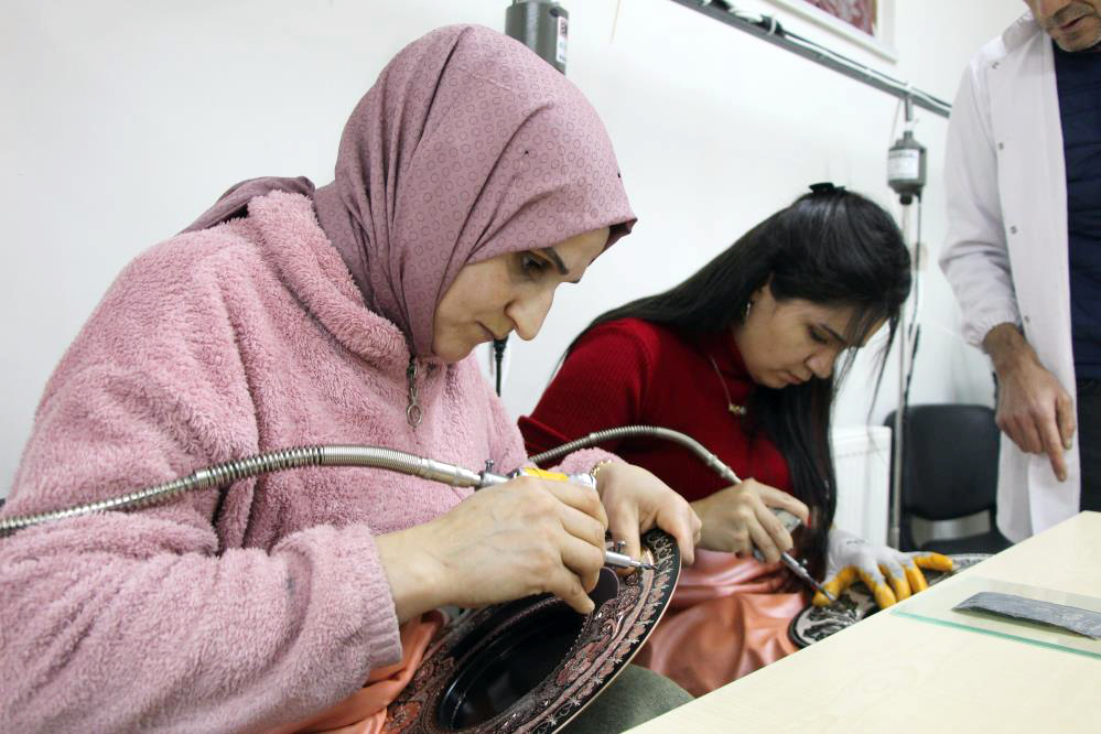 Bingöl Aile ve Sosyal Hizmetleri İl Müdürlüğü ile Bingöl Valiliği Sosyal Yardımlaşma ve Dayanışma Vakfı (SYDV) tarafından yürütülen, Fırat Kalkınma Ajansı'nın (FKA) desteklediği “Kadın üretiyor, Bingöl kazanıyor” adlı Sosyal Gelişmeyi Destekleme Programı (SOGEP) projesi çerçevesinde, Aile Destek Merkezi-2’de geçtiğimiz yıl açılan bakır işleme kursunda çalışmalar devam ediyor. Yaklaşık 15 kadın kursiyerin katılım sağladığı kursta önce eğitimler veriliyor, ardından uygulamaya geçiliyor. Büyük çoğunluğu ev hanımı olan kadınların katıldığı kursta darbe kalemlerle bakırın üzerine ince motifler işlenerek, unutulmaya yüz tutmuş sanat ortaya çıkartılıyor. Kadınlar, bakırdan saat, tabak, çay ve kahve takımlarının yanı sıra özel siparişlere göre hediyelik eşyalar da hazırlayarak hem kendilerini geliştiriyor hem de aile ekonomilerine ciddi bir katkı sağlıyor.