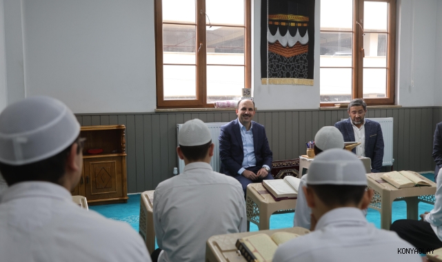 Konya Büyükşehir Belediye Başkanı Uğur İbrahim Altay, Karatay Ferhan Anne Erkek Hafızlık Kur’an Kursu’nu ziyaret etti. Yılın son gününde hafızlık öğrencileriyle bir araya gelen Başkan Altay, gençlerle sohbet ederek eğitimlerine dair bilgi aldı. Başkan Altay, manevi eğitimin önemine dikkati çekerek, “Gençlerin o kadar çok ilgileneceği şey varken Kur’an ile ilgilenmeleri çok kıymetli, takdire şayan. Allah hepinizden razı olsun” ifadelerini kullandı. Gençlerin başarılarının devamını temenni eden Başkan Altay, Kur’an-ı Kerim öğrenmeye yönelik gösterdikleri gayretten dolayı öğrencileri ve bu yolda emek veren herkesi tebrik etti.