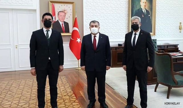 Kadınhanı İlçe Belediye Başkanı Mehmet Badem, Ak Parti Kadınhanı İlçe Başkanı İrfan Karaca ile birlikte Sağlık Bakanı Fahrettin Koca'yı makamında ziyaret etti.