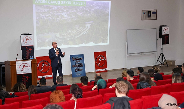 Gençlere Meram’ı anlatan ve son dönemde yaptıkları çalışmalarla ilçenin marka değerine katkı sunduklarını belirten Başkan Kavuş, “Evliya Çelebi hayranlıkla anlattığı seyahatnamesinde Meram’ı; “Budin’de Peçuy mesiresi, Sirem şehrindeki Baruthane mesiresi, Kırım yarımadasının Sudak Bağı, İstanbul’un bahçe ve gülistanları, Malatya’nın Aspuzu’su, Tebriz’in Şah-ı Cihan Bağı bu Konya’nın Meram mesiresinin yanında bir çimenlik bile değildir” diye tarif etmiştir. İnsana dair ne kadar güzellik varsa Meram’da bu güzellikleri görmek mümkün” şeklinde konuştu.