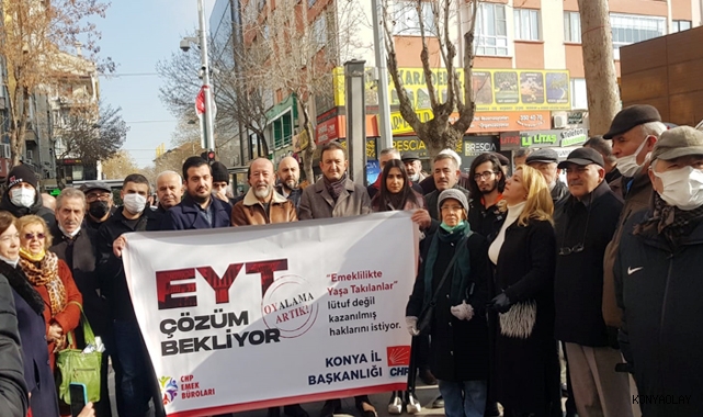 CHP Konya İl Başkanı Barış Bektaş, "22 yıldır hak mücadelesi veren emeklilikte yaşa takılanlar lütuf değil, kazanılmış haklarını istiyorlar" dedi.