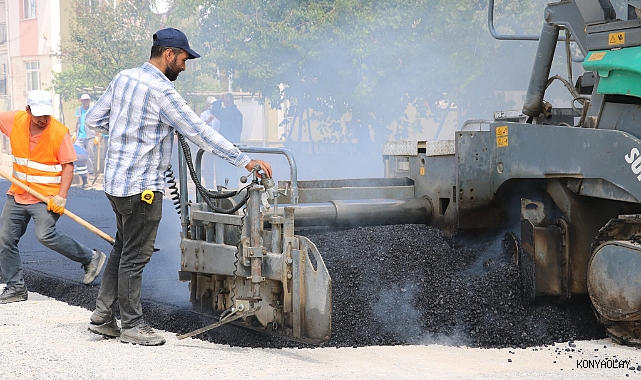 Beyşehir Belediyesi yolların sıcak asfaltını da kendi ekipmanlarıyla yapıyor.