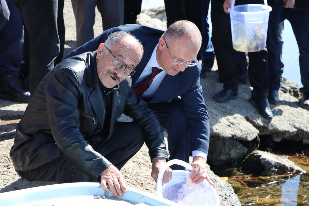 Törenden sonra ise Beyşehir Belediye Başkanı Adil Bayındır ve Konya Tarım ve Orman İl Müdürü Duran Seçen ile beraberindeki protokol üyeleri tarafından kovalar içerisinde bulunan 2 milyon adet yavru sazan balıkları göl sularıyla buluştur