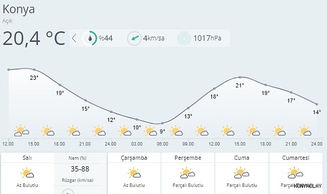 Meteoroloji Genel Müdürlüğü bu hafta Konya’da havanın çoğunukla bulutlu olacağını bildirdi.
