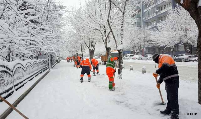 Konya Büyükşehir Belediyesi, dün geceden itibaren etkili olan kar yağışı nedeniyle şehir merkezinde ve 31 ilçede yolları açık tutmak için 300 araç ve 1.500 personelle yoğun mesai harcıyor