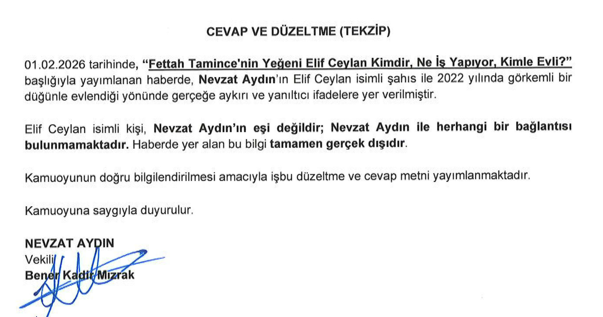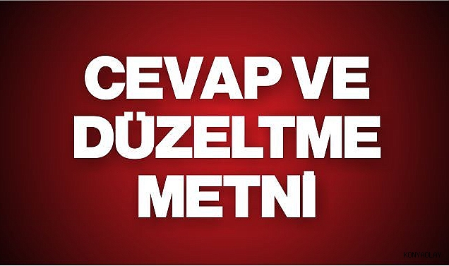 01.02. 2026 tarihinde haber sitemizde yayımlanan bir haber üzerine bu cevap ve düzeltme hakkını yayınlıyoruz. Söz konusu haberi de yayından kaldırmış bulunuyoruz. Haberi düzeltir, haberin taraflarından özür dileriz.