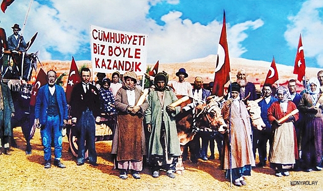 Türkiye Cumhuriyeti’nin 100. kuruluş yıldönümü ülke genelinde çeşitli etkinliklerle kutlanıyor. Cumhuriyet Bayramı’nın coşkusu bütün yurdu sararken, Cumhuriyet’in simgesi haline gelen “Cumhuriyet'i biz böyle kazandık” pankartlı fotoğrafın gerçek hikayesi yeniden gündeme geldi. Simge fotoğrafın hikayesini, yapımcı, oyuncu ve senarist Gülse Birsel 2015 yılında yazmıştı. Fotoğraf, Uşak'ın ilk fotoğrafçısı Foto Kazım diye bilinen Kazım Özler tarafından çekilmişti. Dedesinin Kurtuluş Savaşı'nda savaştığını ve 4 madalyasının olduğunu belirten Gülse Birsel, o fotoğrafın hikayesini "Uşaklı bir ailenin hikâyesi... Benim ailemin..." başlıklı yazısında şöyle anlatmıştı:“‘Cumhuriyet'i biz böyle kazandık’ başlıklı, Kurtuluş Savaşı'nın sembollerinden biri haline gelmiş bu meşhur fotoğrafı biliyorsunuz. Bu fotoğraf 1933 yılında çekilmiş. O yoksul, Cumhuriyet'i küçük imkânlar ama gururla kutlayan şehir, Uşak. Yani babamın memleketi.Onun babası, yani dedem, İstiklal Savaşı'nda 4 madalya almış Asım Bey. O zaman Kurtuluş Savaşı'nda mücadele edenlere çokça dendiği gibi, lakabı ‘Mücahit Asım’. ‘Cihat’ kelimesinin şimdi Ortadoğu'da olduğu gibi üzerine bomba bağlayıp masum insanların ortasında patlatmak için kullanılmadığı, bu vatanın bağımsızlığı için mertçe savaşmayı ifade ettiği yıllar.Dedemin 33 kurşun deliği olan bir pelerini var, ilginç bir savaş anısı olarak sonradan Tarih Kurumu'na bağışlanmış.""O SİYAH CEKETLİ ADAM...""Fotoğrafın ilginç ve benimle ilgili hikâyesine gelelim: 1933 yılının Cumhuriyet Bayramı'nda çekiliyor. Uşak'ın ilk fotoğrafçısı Hüsnü Kazım Özler tarafından. Babamın deyimiyle 'Foto Kazım'.Fotoğrafta gördüğünüz siyah ceketli, kravatlı adam, babamın kuzeni! Dedem Mücahit Asım'ın eşinin (yani babaannemin) dayısının oğlu Kamil Kabalak. Uşak o zaman Kütahya'ya bağlı bir ilçe ve Kamil Bey de o ilçenin belediye başkanı."FOTOĞRAF 90’LARIN BAŞINDA BULUNDU“1990'ların başında babam bu fotoğrafı evde buluyor! Resimdeki kuzeni Kamil Kabalak'ın oğlu Hasan Kabalak'a, Ankara'ya yolluyor. Onlar da Genelkurmay Başkanlığı'nın arşivine gönderiyorlar. Fakat arşive yanlışlıkla Ankara'da 1929'da çekilmiş diye kaydediliyor.”“2007 yılında, fotoğraftaki Kamil Kabalak'ın yeğeni, (maalesef çok yakın zamanda rahmetli olan) Tuğgeneral Zeki Güngör, dayısının bulunduğu resmi, bir askeri tesiste "Ankara–1929" yazısıyla görüyor. Düzeltilmesi için dava açıyor. Fotoğrafın Uşak'ta çekildiği tespit ediliyor.”