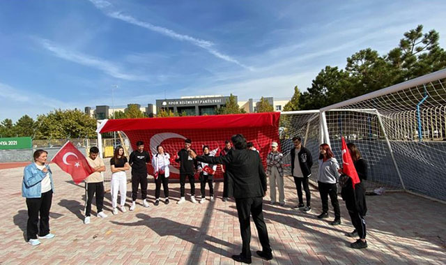 Spor Bilimleri Fakültesi akademik personelin destekleri ile gerçekleştirilen etkinlikte Cumhuriyet’in kuruluş aşamasında Türk halkının hangi şartlarda, ne tür zorluklar ile başardığı anlatılarak öğrenciler üzerinde farkındalık oluşturuldu.