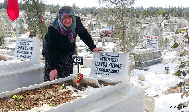 Kahramanmaraş merkezli depremlerde oğlu ve gelini ile iki torununu kaybeden Azet Yılmaz, günün büyük bir bölümünü ailenin defnedildiği şehir mezarlığında geçiriyor. Mezarlığın evi haline geldiğini belirten yaşlı kadın, çocuklarını çok özlediğini söyledi. 6 Şubat'ta meydana gelen Kahramanmaraş Pazarcık merkezli 7,7 büyüklüğündeki ilk depreme kent merkezindeki 5 katlı apartmanda yakalanan Aydın (53) ve Ayşegül Yılmaz (50) çifti ile çocukları İlayda (23) ve Engin Yılmaz (15) enkaz altında kaldı. Yılmaz ailesinin fertleri depremin 38’inci saatinde ölü bulunurken aile şehir mezarlığına defnedildi.