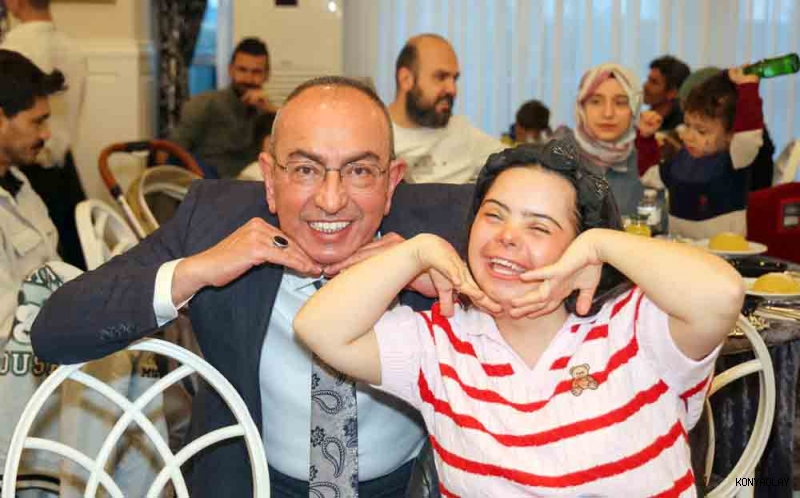 Down Sendromlu Bireyler Yaşam Destek Merkezi DOSD Meram’ın geleneksel hale gelen aile iftarı bu yıl da yoğun katılımla gerçekleştirildi. Meram Kaymakamı Dr. Bayram Yılmaz, Meram Belediye Başkanı Mustafa Kavuş, İl Milli Eğitim Müdürü Murat Yiğit, Necmettin Erbakan Üniversitesi Tıp Fakültesi Dekanı Prof. Dr. Şükrü Nail Güner, Meram İlçe Milli Eğitim Müdürü Erkan Yakışır, DOSD Meram Dernek Başkanı Mehmet Munlafalıoğlu’nun yanı sıra down sendromlu bireyler, aileleri, eğitmenler ve davetliler aynı sofrada buluşarak Ramazan ayının birlik ve dayanışma ruhunu birlikte yaşadı.