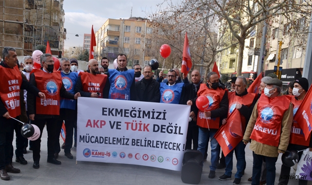 Resmi olarak açıklanan enflasyon ile emekçilerin enflasyonu arasında çok ciddi bir uçurum olduğuna dikkat çeken Özbay, şunları söyledi: “2021’in son ayında başlayan ve yılın ilk günü zirve noktasına çıkan zamlar Türkiye’de enflasyonun kronik hale geldiğini göstermektedir. Memur ve memur emeklisine sözde yüzde 30,5 oranında zam yapılmıştır. SGK ve BAĞ-KUR emeklisine 25.48 zam yapılmıştır. Ancak memurlar, sözleşmeliler, geçici personel ve memur emeklileri, SGK ve BAĞ-KUR emeklisine gelen sözde zamları hükümet yaptığı zamlarla geri almıştır. Kamu emekçilerinin ve emeklilerinin 2022 Ocak maaşı cebe girmeden erimiştir. İktidarının yaptığı zamlar emekçileri temel besin maddelerini dahi karşılayamaz duruma getirilmiştir. Buğday ülkesinde ekmek lüks olmuş emekçiler halk ekmekleri kuyruklarına girmek zorunda kalmıştır. Bebek mamalarına zincir vurulmuş şeker ve yağ satışına sınırlama getirilmiştir. Hükümet, enflasyon ile değil enflasyon sepetiyle mücadele ederek enflasyon rakamlarını olduğundan farklı çıkarmaktadır. Resmi olarak açıklanan enflasyon ile emekçilerin enflasyonu arasında çok ciddi bir uçurum vardır. Ülkemizin yaşadığı derin ekonomik kriz sonucunda ortaya çıkan aşırı zamlar, pahalılık, döviz kurlarındaki artış ve yoksulluk emekçilerin artık tükenmesine neden olmuştur. Sözde toplu sözleşme görüşmelerinde kamu çalışanlarına reva görülen 2 yıllık zamlar ocak ayı bitmeden çoktan erimiştir. İktidar ve yandaş konfederasyonların ortaklığı ile imzalanan TİS gelecek uzun yıllar boyunca kamu emekçilerinin nezdinde satış sözleşmesi olarak kalacaktır. Kamu emekçilerini enflasyona karşı ezdirenler göstermelik zamlarla sonuç alamayacaktır. Esas mesele biz kamu emekçilerine dayatılan sefalet ücretidir. Özelleştirmeleri savunanlar hesap verecektir. Elektrik, doğalgaz, köprü, hastane, otoyollar kamulaştırılsın. Zamlar geri alınsın. Toplu sözleşme masası yeniden kurulsun. Emekçiler için vergi dilimi yüzde 10’da sabitlensin. Birleşik Kamu-İş Konfederasyonu olarak kamu emekçilerini ve yurttaşları açlığa, sefalete mahkûm eden enflasyon oranını ve zamları kabul etmiyoruz.”