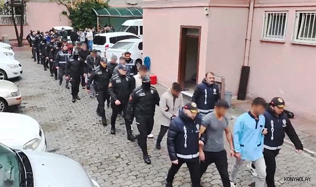 Konya Emniyet Müdürlüğü, kent merkezi ve 31 ilçede yaptığı eş zamanlı operasyonla çeşitli suçlardan araması bulunan 133 kişiyi operasyonla gözaltına aldı, şüphelilerin 75’i tutuklanarak cezaevine gönderildi