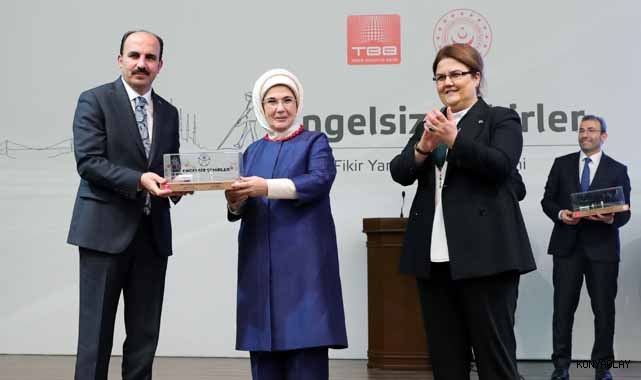 Konya Büyükşehir Belediyesi’nin “Engelsiz Kent Konya Erişilebilirlik Master Planı” Türkiye Belediyeler Birliği (TBB) tarafından düzenlenen Engelsiz Şehirler Fikir Yarışması’nda ödül aldı.İstanbul’da Pendik Belediyesi’nin ev sahipliğinde Yunus Emre Kültür Merkezi’nde gerçekleştirilen Engelsiz Şehirler Fikir Yarışması Ödül Töreni’ne Cumhurbaşkanı Recep Tayyip Erdoğan’ın eşi Emine Erdoğan, Aile ve Sosyal Hizmetler Bakanı Derya Yanık ile ödül alan belediyelerin başkanları katıldı.Yarışmada Konya Büyükşehir Belediyesi’nin “Engelsiz Kent Konya Erişilebilirlik Master Planı” ödüle layık görüldü. Konya Büyükşehir Belediye Başkanı Uğur İbrahim Altay ödülü Emine Erdoğan'ın elinden aldı.Ödül için teşekkür eden Konya Büyükşehir Belediye Başkanı Uğur İbrahim Altay, Konya Modeli Belediyecilik anlayışıyla hizmet üretmeye gayret ettiklerini; engelli vatandaşların ihtiyaçlarından yola çıkarak “Engelsiz Kent Konya Erişilebilirlik Master Planı”nı hayata geçireceklerini ifade etti.Altay, “Şehrimizde vatandaşlarımızın yoğun olarak kullandıkları noktalarda uygulayacağımız bu proje ile şehir merkezinde hareketliliğin en fazla olduğu 15 farklı noktada engelli kardeşlerimizin kamu binalarına, parklara ve diğer yaşam alanlarına en rahat şekilde ulaşmalarını sağlamak istiyoruz. Bugün aldığımız bu anlamlı ödül bu konuda yapacağımız çalışmalarda en büyük motivasyon kaynağımız olacaktır. Bu anlamlı ödül sebebiyle Cumhurbaşkanımız Sayın Recep Tayyip Erdoğan’a, Sayın Emine Erdoğan Hanımefendi’ye, Aile ve Sosyal Hizmetler Bakanımız Sayın Derya Yanık Hanımefendi’ye ve emeği geçen herkese tüm hemşehrilerim adına teşekkür ediyorum” diye konuştu.