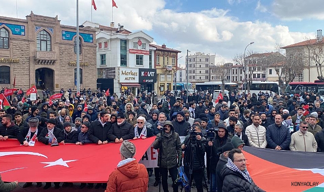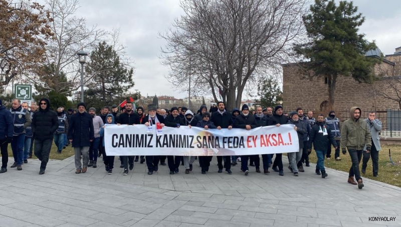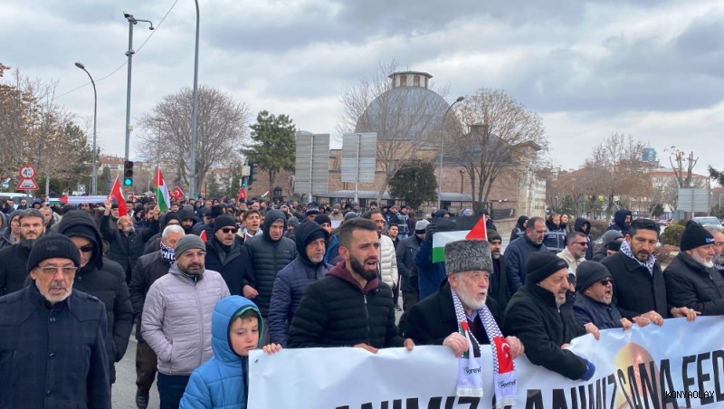 Konya'da şehitleri anmak ve Gazze için acil ateşkes çağrısı yapmak için yürüyüş düzenlendi.
