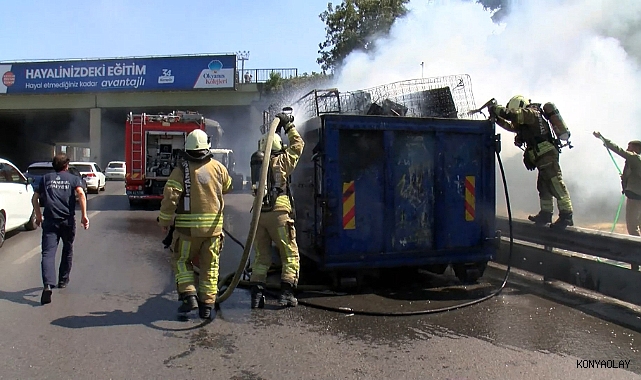 Kadıköy'de D-100 kara yolu Kartal istikametinde seyir halindeki hurda yüklü kamyonetin kasasında çıkan yangın, itfaiye ekiplerince söndürüldü.