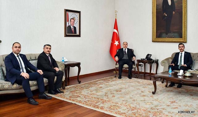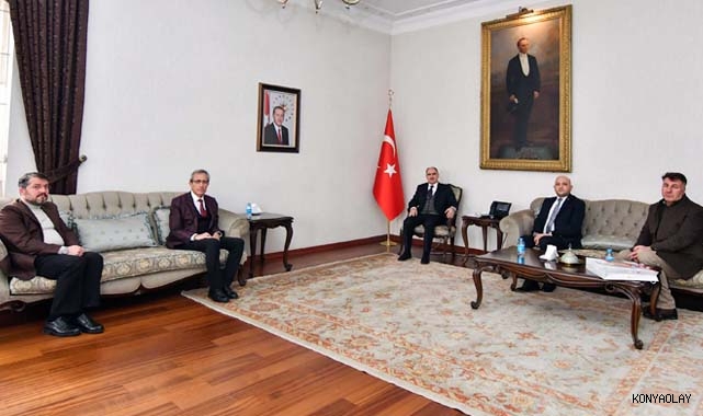 Konya Muhtarlar Derneği Başkanı Hamdi Demir ve Yukarıpınarbaşı Mahalle Muhtarı Mustafa Yavuz Er, Vali Vahdettin Özkan’ı makamında ziyaret ettiler.