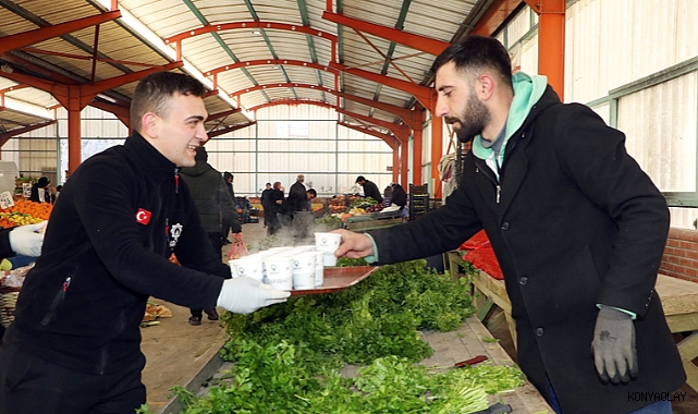 Karatay Belediyesi sabahın erken saatlerinde işe giden vatandaşlar, kütüphanelerde ders çalışan öğrenciler, işçi servisleri ve daha birçok noktada geleneksel hale getirdiği çorba ikramını, semt pazarlarında devam ettiriyor.