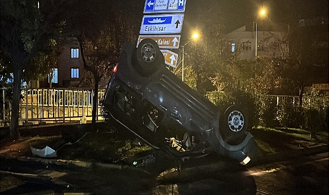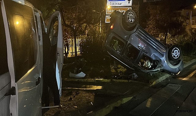 Kocaeli’nin Gebze ilçesinde kavşakta minibüs ile çarpışan hafifi ticari araç takla attı.