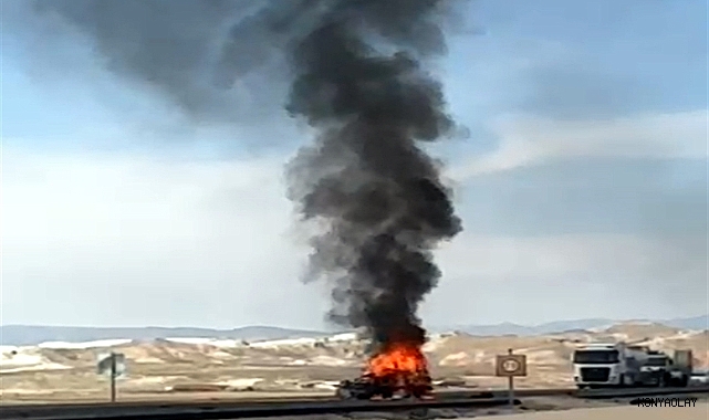 Kazada alev alan otomobilin sürücüsü hayatını kaybetti.