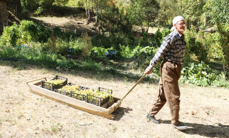 HAKKARİ'nin Şemdinli ilçesinde geçimini üzüm üreterek sağlayan Süso Çakar (80), hasat ettiği üzümleri geleneksel yöntemle kızakla kilometrelerce taşıyarak köyüne indiriyor. Çakar, tek geçim kaynağı olan bu işi severek yapmanın mutluğunu yaşadığını söyledi.Şemdinli ilçesi Altınsu köyünde yaşayan 12 çocuk babası Süso Çakar, 65 yıldır geçimini üzüm üretimiyle sağlıyor. Kendisine ait dağlık arazilerde kurulu üzüm bağlarında tek başına çalışan Çakar, sabahın erken saatlerinde bahçesine gidip gün boyu üzüm topluyor. Hasat ettiği üzümleri ise kızakla taşıyarak yaklaşık 3 kilometrelik dik yamaçtan köyüne indiriyor. Çakar, bir ay boyunca hasat ettiği yaklaşık 8 ton üzümü satarak geçimini sağlıyor.Çocukluğundan beri üzüm üretimiyle uğraştığını söyleyen Çakar, bağların köye yaklaşık 6 kilometre uzaklıkta olduğunu, bu işi babasından öğrendiğini ve yıllardır aynı yöntemle sürdürdüğünü söyledi. Çakar, "Babamla birlikte dağdaki bağlara gider, üzümleri kızakla köye indirirdik. Şimdi de öyle indiriyoruz. Babamdan sonra bu iş bana kaldı" dedi.‘BU YIL 8 TON ÜZÜM SATTIM’80 yaşında olmasına rağmen işini severek yaptığını belirten Çakar, ailesinin tek geçim kaynağının üzüm olduğunu söyledi. Yaklaşık bir ay süren hasat döneminde 8 tona yakın üzüm hasat ettiğini belirten Çakar, "Bu sene üzüm hasadımız umduğumdan daha güzel oldu. Bu sene 8 ton üzüm sattım. Hala da topluyorum. Üzüm bağlarım dağda olduğu için toplanması indirmesi biraz zor oluyor. Sabah erken saatlerinde kasalarımı alıp bağa çıkıyorum gün boyunca hasat ettiğim üzümleri kasalara dolduruyorum. Bir sonraki gün ise sırtıma kızak alıp 3 kilometre yokuş çıkıyorum. Topladığım üzüm kasalarını yükleyip çekiyorum. Hem zevkli hem de zahmetli bir iş. Benim 12 çocuğum var ve 11 çocuğumu üzüm satarak okuttum" diye konuştu.