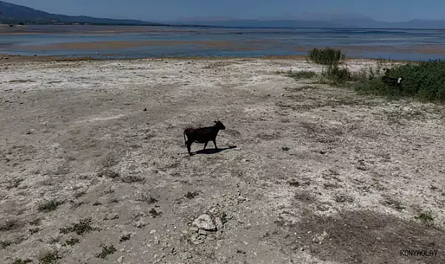 Konya ve Isparta topraklarındaki Beyşehir Gölü'nde su, bazı yerlerde kıyıdan yaklaşık 300 metre çekildi.
