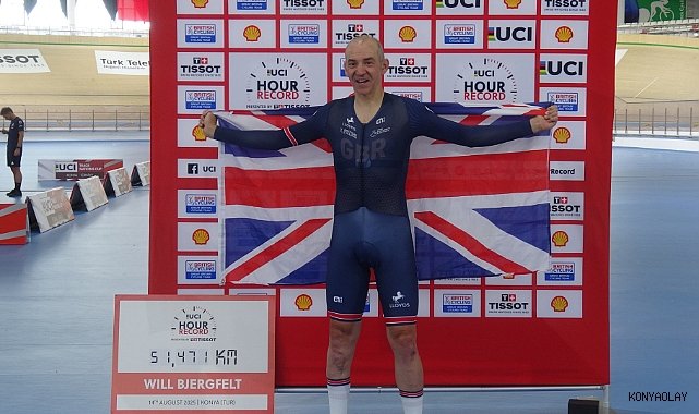 Konya Olimpik Veledromu'nda dünya rekoru denemesi yapan İngiliz bisikletçi William Bjergfelt, C5 Kategorisi'nde 1 saatte 51,463 kilometre ile dünya rekorunu kırdı.Konya Olimpik Veledromu'nda gerçekleştirilen dünya rekoru denemelerinde Birleşik Krallık’tan William Bjergfelt, UCI Masters Hour Record’un yeni sahibi oldu. 206 tur atan Bjergfelt, 1 saatlik süre içerisinde 51,463 kilometre kat ederek ortalama 51 kilometre hıza ulaştı.‘ Avrupa şampiyonası Konya'da düzenlenmeli Avrupa şampiyonasının Konya'da düzenlenmesi gerektiğini söyleyen William Bjergfelt, “Uzun zamandır saat rekoru için hazırlanıyorum. Çok iyi bir ekip ile hazırlandık. Türkiye Bisiklet Federasyonu’na iş birliği için teşekkür ederim. Daha önce Türkiye’ye Dağ Bisikleti Dünya Kupası’nda yarışmıştım. Türkiye’de Konya Velodromu’nun çok hızlı olduğunu duyunca rekor denemesini burada yapmak istedim. Burada daha çok yarış düzenlenmesini umuyorum. Pist mükemmel, ülke güzel, çevredeki manzara harika ve buradaki herkes çok dostane. Keşke burada daha fazla yarış yapabilsek.” dedi. Rekor düzenlemeleri devam ediyor Kırılan rekorun ardından, Matthew Richardson 200 metrede, Charlie Tanfield ise dünya 1 saat rekorunu kırmak için denemelerine devam ediyor. (dha)