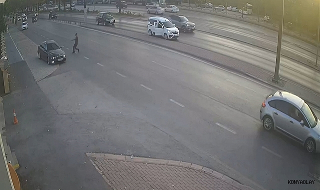 Konya ’da drift atıp polisten kaçmaya çalışan sürücü B.K., otomobilinin lastiğine ateş edilerek yakalandı.