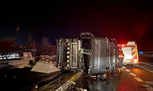 Konya’nın Kulu ilçesinde otomobilin çarptığı tırın devrilmesi sonucu 1 kişi yaralandı.