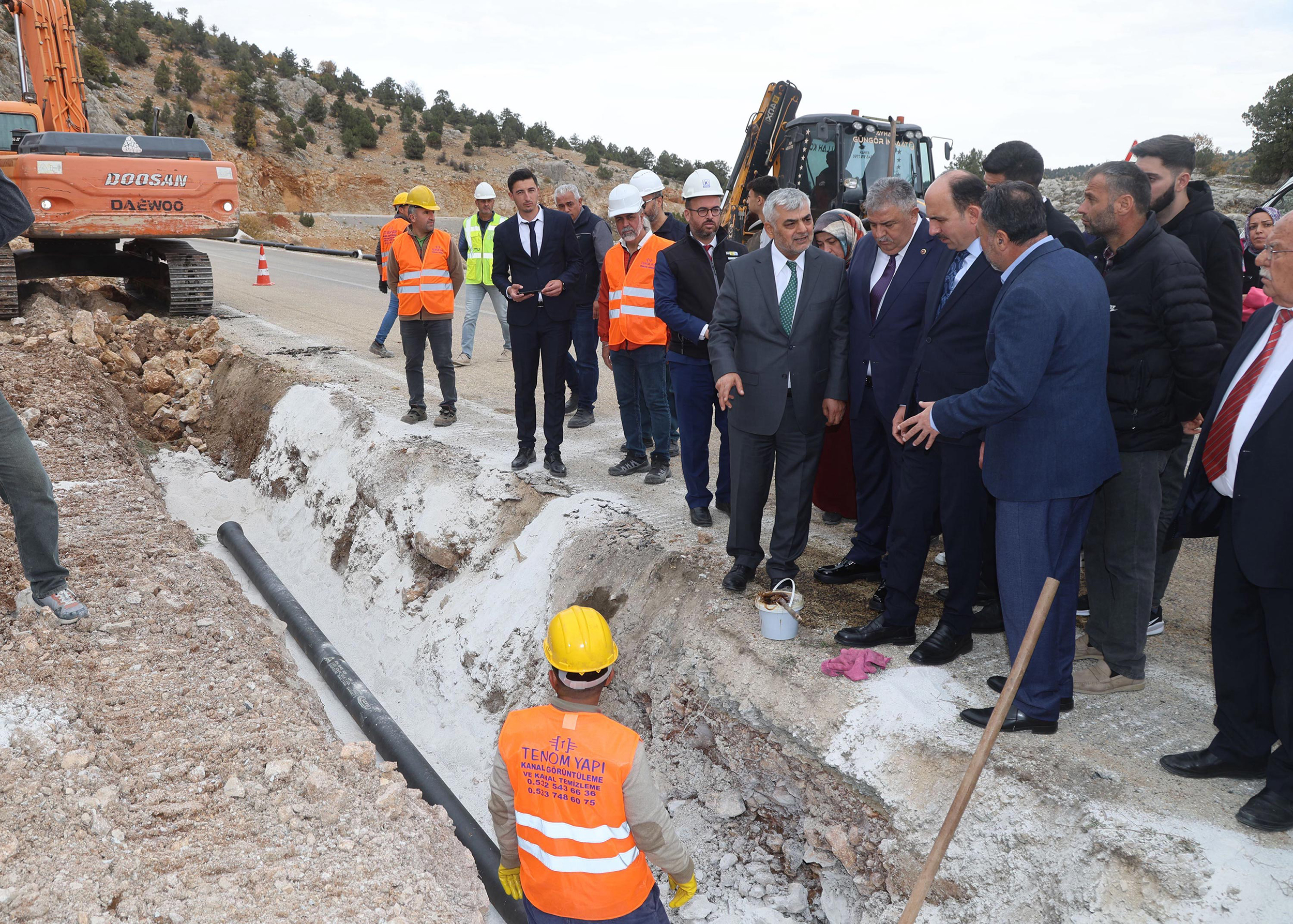 AK Parti Konya Milletvekili Mustafa Hakan Özer ve Konya Büyükşehir Belediye Başkanı Uğur İbrahim Altay, Bozkır, Ahırlı ve Yalıhüyük’ü ziyaret ederek, Bozkır’da KOSKİ tarafından yürütülen ve 38 mahallenin içme suyu sorununu çözecek Grup Suyu Çalışmasında incelemelerde bulundu. Üç etaptan oluşan grup suyu çalışmasında birinci etabı tamamladıklarını, ikinci etapta çalışmaların sona yaklaştığını belirten Başkan Altay, “Güncel bedelle 425 milyon liralık bir yatırım gerçekleştiriyoruz. Toplamda 38 belde ve mahallemizin su sorununu çözeceğimiz önemli bir proje hayata geçiriliyor. Hayırlı olmasını diliyorum” dedi. Milletvekili Özer, “Büyükşehir Belediyemiz bu bölgede yapmış olduğu yenileme çalışması ile birlikte bölgenin kaynağını en güzel en verimli şekilde kullanmasını sağlayacak” diyerek Başkan Altay’a teşekkür etti.