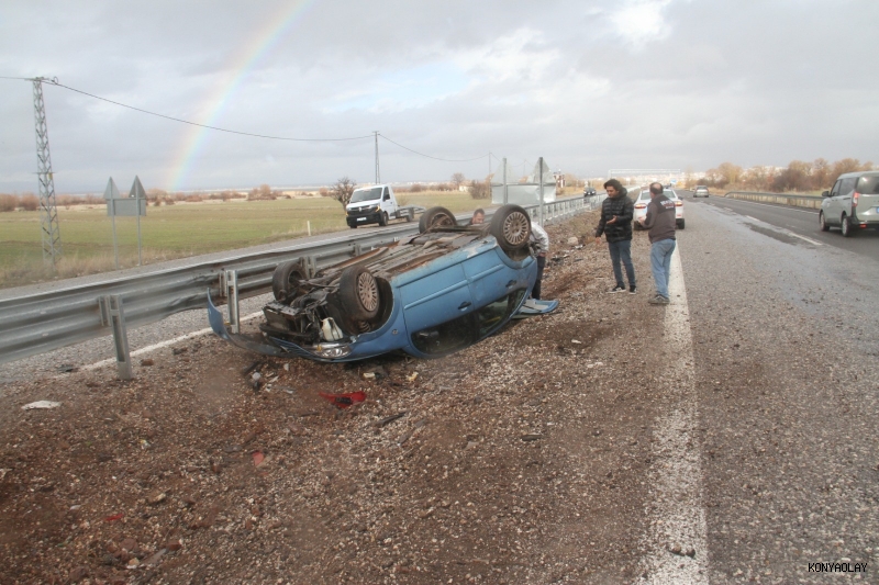 Diğer kaza ise Beyşehir-Antalya kara yolunun 5. kilometresinde yaşandı. Alınan bilgiye göre, Beyşehir ilçe merkezi istikametine seyir eden H.S. yönetimindeki 07 ACL 186 plakalı otomobil, kaymakam virajı mevkiinde devrilip bariyerlere çarparak durabildi. Ters dönen araç içerisindeki sürücü ile 2 kişi kazayı yara almadan atlatırken, yolcu olarak bulunan 1 kişi yaralandı. Yaralı, ambulansla kaldırıldığı Beyşehir Devlet Hastanesinde tedavi altına alındı.