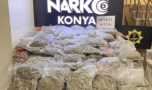 Konya Emniyet Müdürlüğüne bağlı Narkotik Suçlarla Mücadele Şube Müdürlüğü ekipleri, uyuşturucu sevkiyatı yaptığı değerlendirilen iki aracı takibe aldı. Kovalamaca sonucu yakalanan araçlarda yapılan aramada 94.250 kg skunk maddesi ele geçirildi. Olayda gözaltına alınan Muhammed Ege B., Mehmet K. ve Gülçin Y., emniyetteki işlemlerinin ardından Uyuşturucu Madde Ticareti Yapmak ve Kullanmak suçlarından sevk edildiği adli makamlarca tutuklanarak cezaevine gönderildi.SKUNK UYUŞTURUCUSU NEDİR? Uyuşturucu türleri arasında yer alan Skunk oldukça kuvvetli bir maddedir. Esrarın bir türü olan Skunk, uyuşturucu olarak esrara göre daha güçlüdür. Türkçe’deki tam karşılığı olarak kokarca kelimesi olan Skunkın yan etkilerinden birisi de beyne daha fazla zarar vererek akıl hastalıklarının önünü açmasıdır. Esrarın hammaddesi hint kenevirinin laboratuvar ortamında diğer uyuşturucu maddelerle hibritleştirilerek elde edilen, esrardan 20 kat daha fazla bağımlılık yapıcı özelliği olan bir uyuşturucu maddedir.