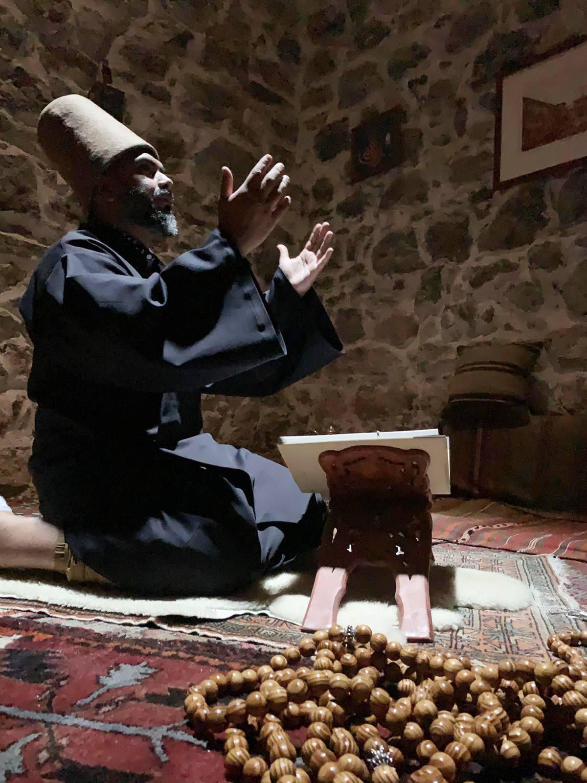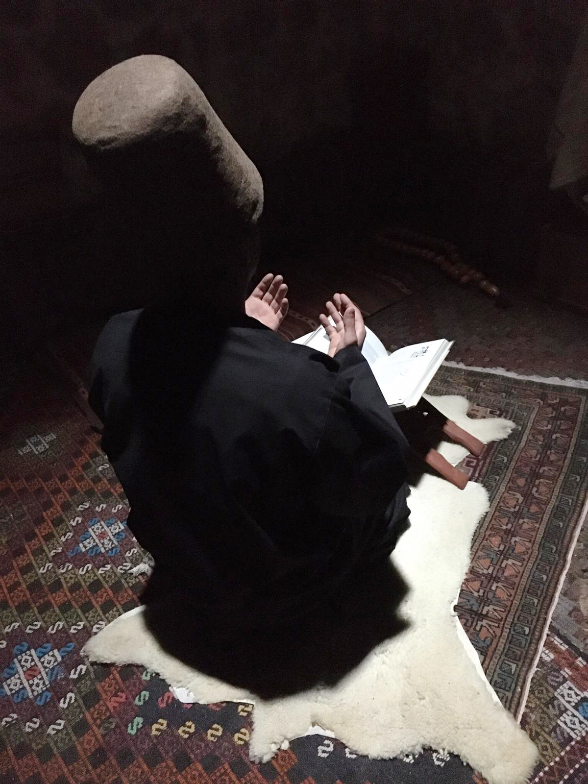 800 yıllık odada kapı içeriden kapatıldığında yukarıdan yansıyan ışığın Post ve Rahleye yansımasını gören ziyaretçiler adeta büyüleniyorlar.