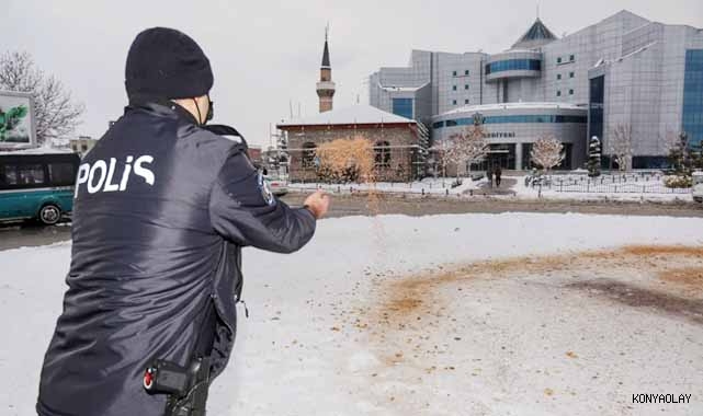 “Huzur ve Güven Şehri Konya” ilkesini benimseyen Konya İl Emniyet Müdürlüğü, kar yağışlarının etkili olduğu olumsuz hava koşullarında yolda kalan sürücü ve yolcularla sokak hayvanlarını yalnız bırakmadı.