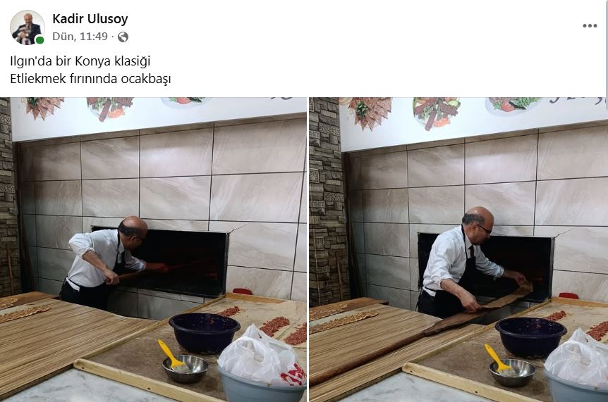Konya’nın kadim lezzetlerinden olan etliekmek, Ilgın ilçesinde unutulmaz bir etkinliğe ev sahipliği yaptı.İlçede faaliyet gösteren bir etliekmek fırınında düzenlenen ocakbaşı programında, siyaset ve gelenek bir araya geldi.Etkinliğin başrolünde ise İYİ Parti Genel Başkan Yardımcısı Kadir Ulusoy vardı.Sahadan fırına geçen Ulusoy’u gören vatandaşlar şaşkınlıklarını gizleyemedi.