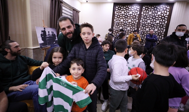 Samimi ve keyifli sohbet sonrası basketbolcular çocuklarla hatıra fotoğrafı çektirdi ve onların yeşil-beyaz formalarını imzaladı.
