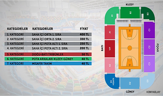 Konya Selçuklu Spor Salonu’nda 8 Ekim Cumartesi günü saat 15.30’da başlayacak karşılaşmanın biletleri, 5 Ekim Çarşamba (bugün) günü saat 14.00 itibariyle satışa sunuldu.Şu an http://www.passo.com.tr ’ den satılan Tofaş maçı bilet fiyatları şöyle:KATEGORİLER KATEGORİLER TOFAŞ 08.10.20221. KATEGORİ SAHA İÇİ ORTA 1. SIRA 400 ₺2. KATEGORİ SAHA İÇİ ORTA 2. SIRA 350 ₺3. KATEGORİ SAHA İÇİ POTA ALTI 1.SIRA 250 ₺4. KATEGORİ SAHA İÇİ POTA ALTI 2.SIRA 200 ₺5. KATEGORİ DOĞU-BATI TRİBÜNLER 50 ₺6. KATEGORİ POTA ARKALARI KUZEY-GÜNEY 40 ₺7. KATEGORİ MİSAFİR TAKIM 40 ₺