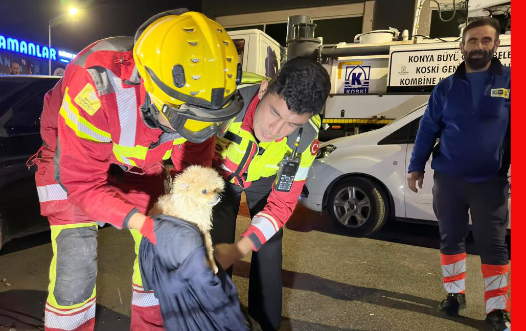 Merkez Karatay ilçesi Fevzi Çakmak Mahallesi Galericiler Sitesi’nde bir galerici esnafının kaybolan "Sütlaç" isimli köpeğinin kanalizasyon borusunda mahsur kaldığı tespit edildi. Esnafın ihbarı üzerine olay yerine Konya Büyükşehir Belediyesi İtfaiye Dairesi Başkanlığı ile KOSKİ Genel Müdürlüğü ekipleri sevk edildi. Adrese intikal eden ekipler, ilk olarak 20 metre uzunluğunda yılan kamerayla köpeğin bulunduğu yeri tespit ettikten sonra kurtarma çalışması başlattı. Büyükşehir Belediyesi ekipleri, dar ve ulaşılması güç alandaki köpeğe zarar vermeden müdahale etmek için büyük bir titizlikle çalıştı. 6 saat süren yoğun gayretin ardından minik köpek mahsur kaldığı kanalizasyon borusundan çıkarılarak özgürlüğüne kavuşturuldu.