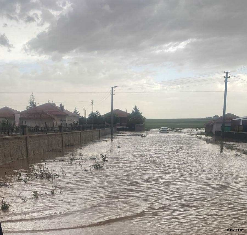 Konya’nın Kulu ilçesinde yağan şiddetli yağmur ve dolu, sel ve hasara neden olurken tarım alanları zarar gördü.