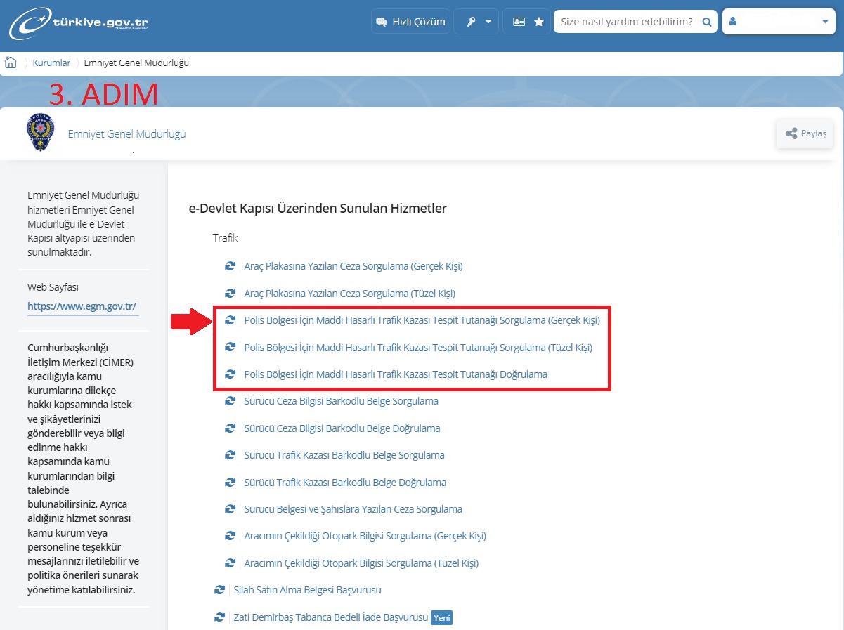 Emniyet Genel Müdürlüğü vatandaşların işlerini daha kolay sürdürebilmeleri için yeni projeleri hayata geçirmeye devam ediyor. Trafik Başkanlığı’nın yaptığı çalışmalarla maddi hasarlı trafik kazalarının tespit tutanakları ‘’e-devlet’’ projesi içinde görüntülenebiliyor. Ayrıca trafik idari para cezaları da Gelir İdaresi Başkanlığı’nın internet sitesinden tebliğ ediliyor.E-DEVLET ÜZERİNDEN MADDİ HASARLI TRAFİK KAZASI TESPİT TUTANAKLARINA ERİŞİMEmniyet Genel Müdürlüğü bünyesinde teknolojiyi de yakından takip ederek hayata geçirilen projeler gün geçtikçe artıyor. Fiziksel olarak sürdürülen bazı işlemler elektronik ortama aktarılarak vatandaşlara zaman kazandırılacak. Trafik Başkanlığı’nın çalışmasıyla maddi hasarlı trafik kazalarında düzenlenen ‘’Maddi Hasarlı Trafik Kazası Tespit Tutanağı’’ e-devlet üzerinden faaliyete geçirildi. Bu uygulamayla maddi hasarlı trafik kazasına karışan sürücüler, araç sahipleri ve sigorta acenteleri tutanaklara e-devlet üzerinden anında erişim sağlarken tutanakların üzerinde oynama ve değişiklik yapılmasının da önüne geçilmiş oldu. Uygulamayı kullanabilmek için e-devlet hesabına giriş yaparak ana sayfadaki kurumlar kısmına tıklanıyor. Kurumlar içerisinden ‘’Emniyet Genel Müdürlüğü’’ kısmına tıkladıktan sonra sunulan hizmetler içerisinden ‘’Polis Bölgesi İçin Maddi Hasarlı Trafik Kazası Tespit Tutanağı Sorgulama sekmesinden tutanak sorgulayabilir barkod ve kare kod ile tutanak doğrulanabiliyor.TRAFİK İDARİ PARA CEZALARI DA İNTERNET ÜZERİNDEN TEBLİĞ EDİLİYORİçişleri Bakanlığı ile Hazine ve Maliye Bakanlığı arasında imzalanan protokol ile araç tescil plakalarına düzenlenen trafik idari para cezası karar tutanakları elektronik tebligata uygun ise Gelir İdaresi Başkanlığınca tebliğ ediliyor. www.gib.gov.tr internet adresinin ana sayfasından interaktif vergi dairesi bölümüne giriş yapılıyor. E-devlet şifresi ile tebligat bölümü aktifleştirilerek düzenlenen elektronik tutanaklar tebligat adresine düşüyor.